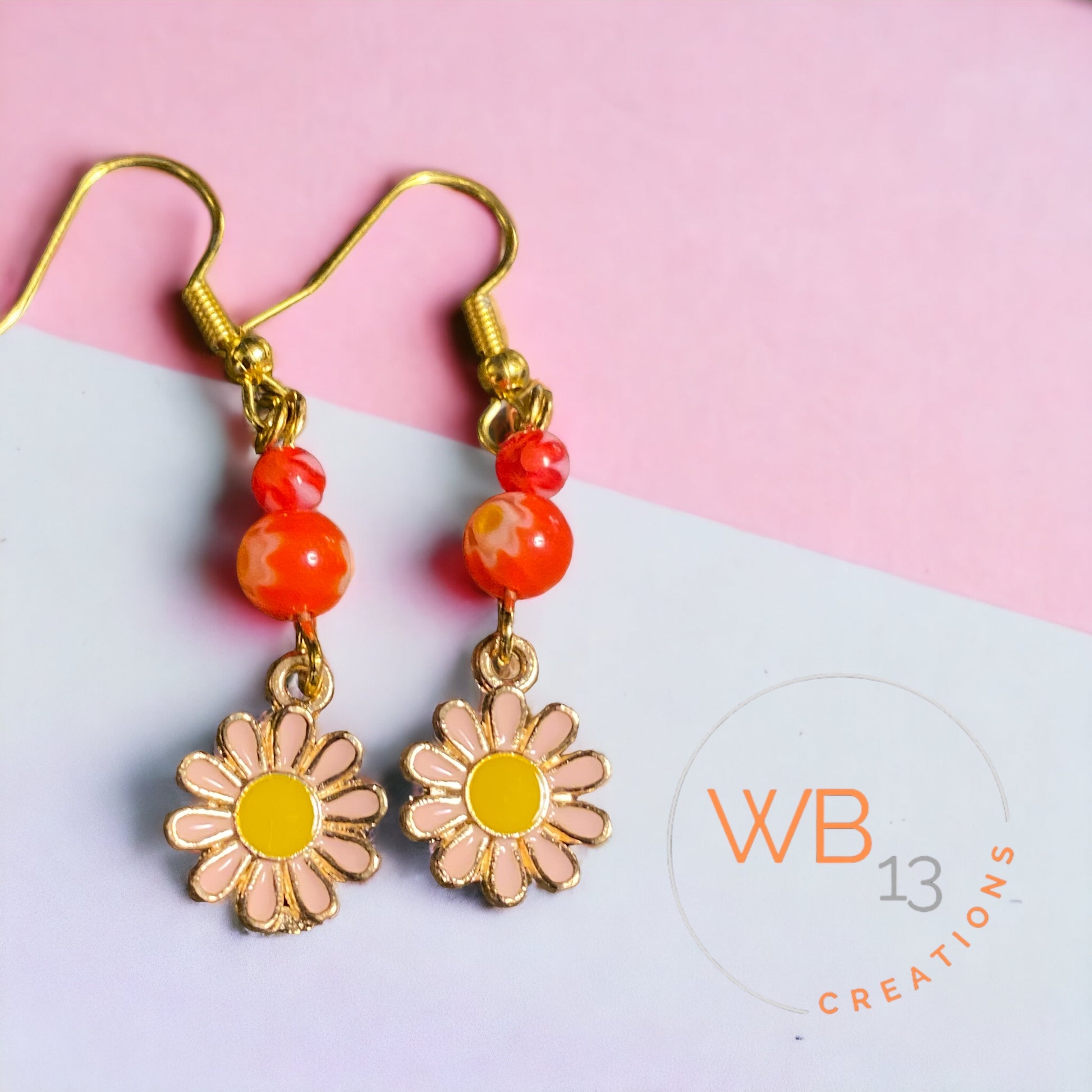 Tickle me pink!! Love how the red beads bring the extra bit of attention to the pink daisy dangling below.